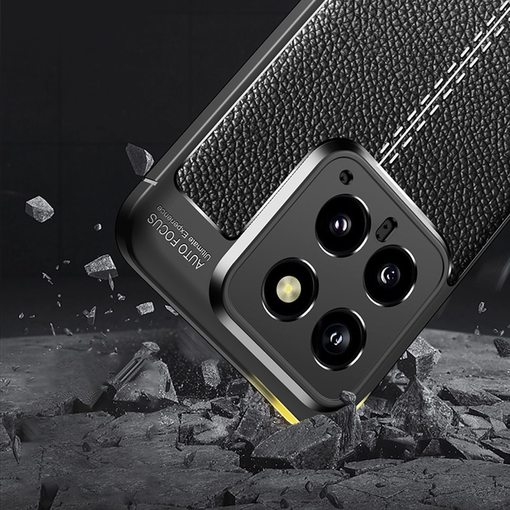 RMPACK Xiaomi 14 Szilikon Tok Bőrmintázattal TPU Prémium Fekete