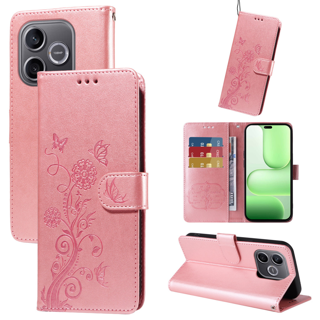 RMPACK Honor 600 Lite 5G Tok Notesz Fényes Butterfly-Stlye Pillangó Mintázattal Rózsaszín