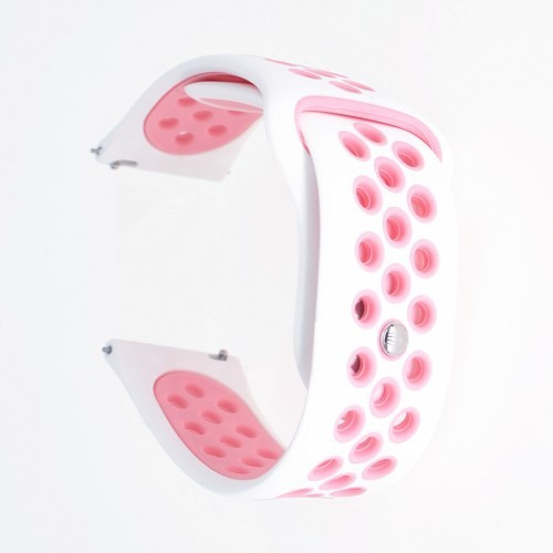 Samsung Galaxy Watch Active Óraszíj - Pótszíj SM-R500 Szilikon Hollow Style Lyukacsos Fehér/Rózsaszín