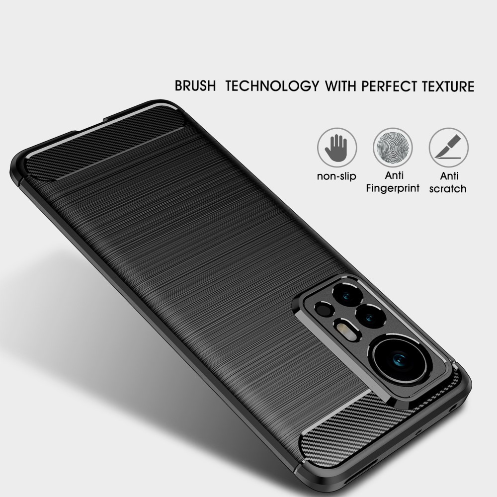 RMPACK Xiaomi 12 Pro Szilikon Tok Ütésállókivitel Karbon Mintázattal Sötétkék