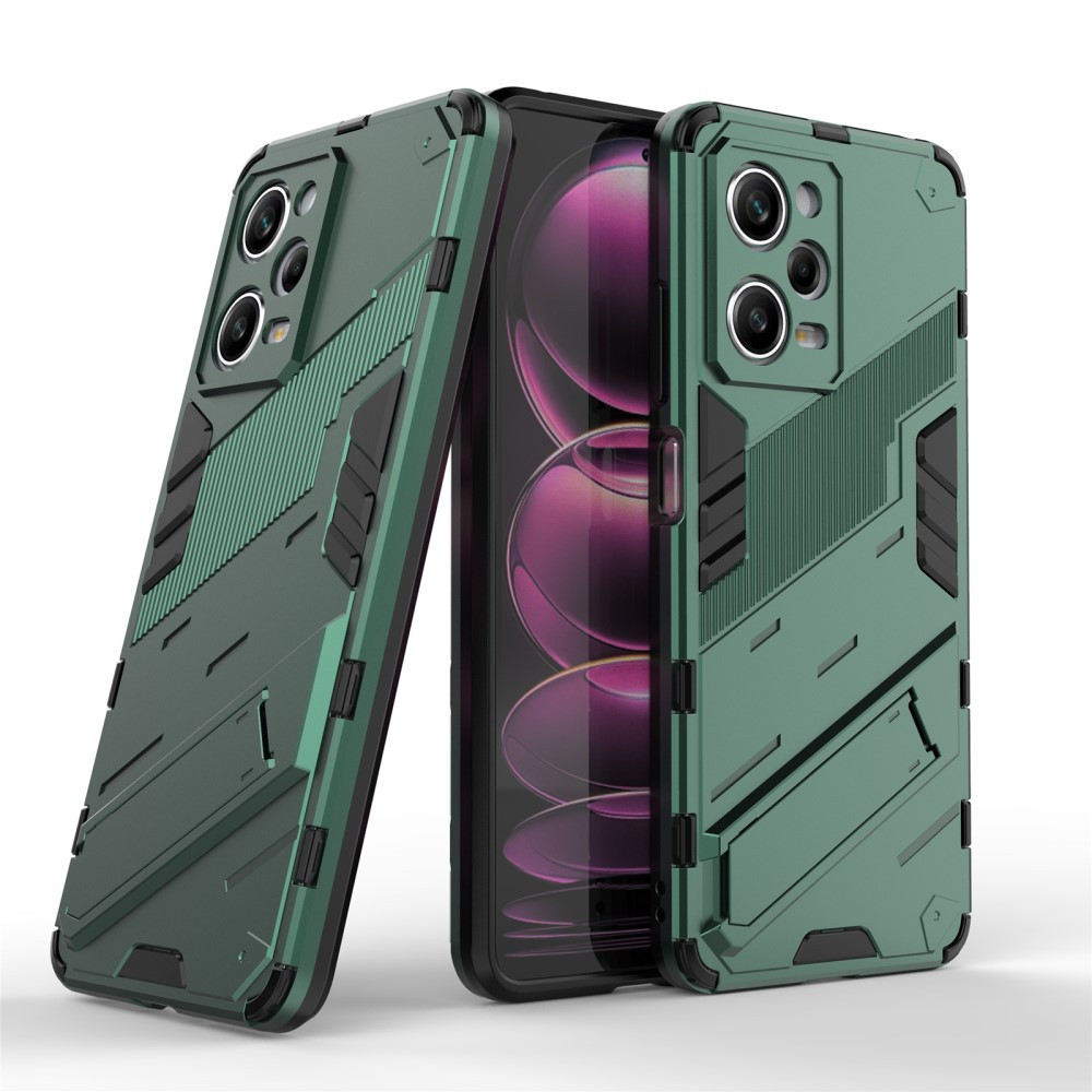 RMPACK Xiaomi Redmi Note 12 Pro 5G Tok Ütésállókivitel Kitámasztható PC + TPU 2in1 Anti-Drop Series Kameralencse védelemmel Zöld