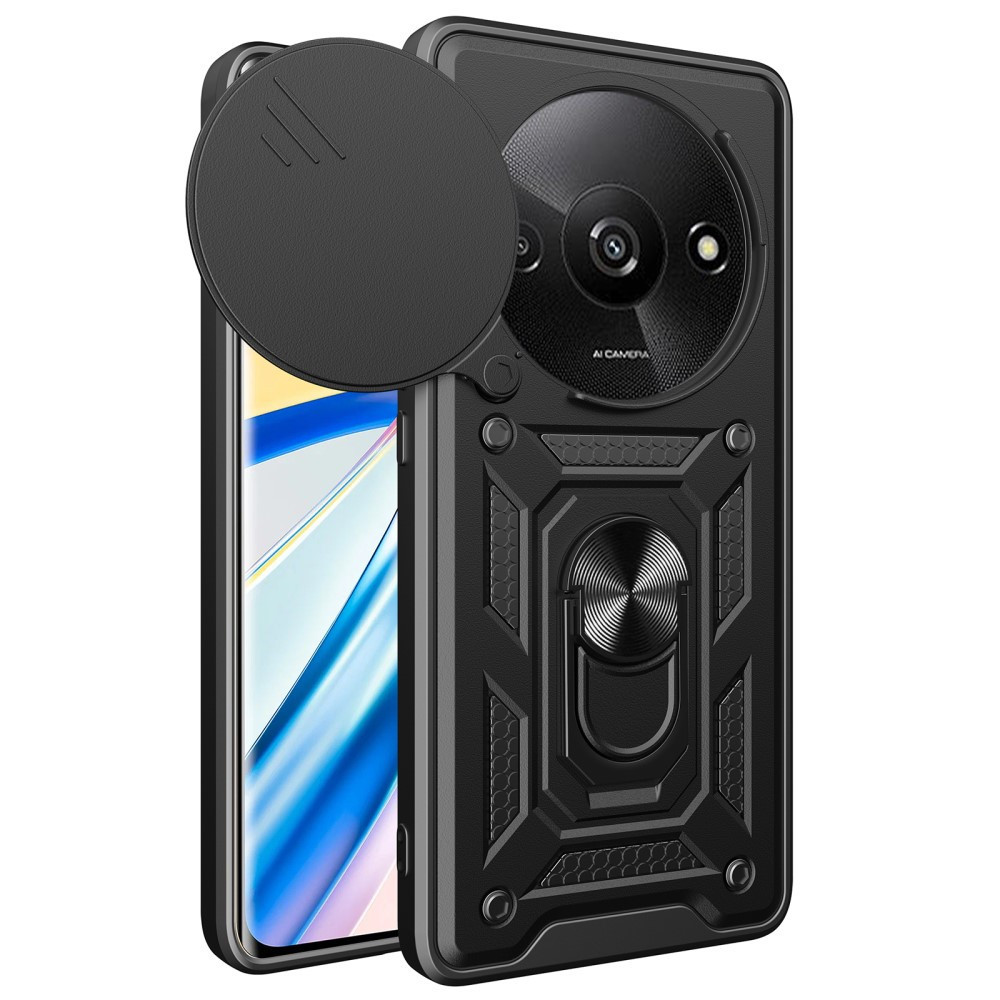 RMPACK Xiaomi Redmi A3 Ütésálló Tok Best Armor Ring Style + Camera Protector Lencsevédelemmel Fekete
